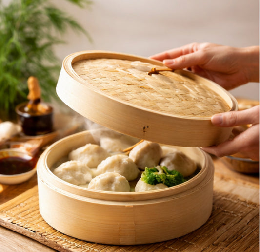 2-Tier Bamboo Steamer Basket (10-inch)